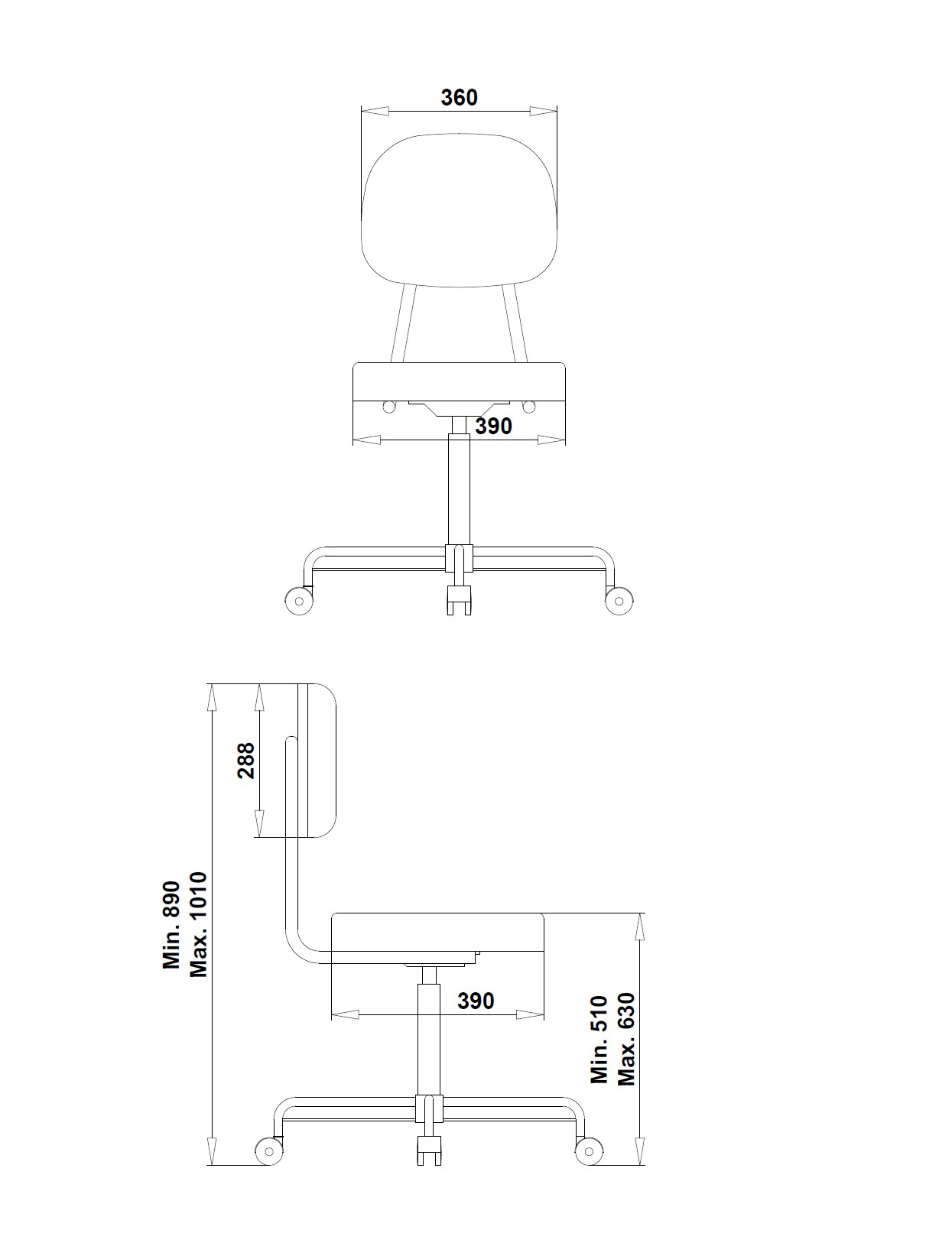 - Mecanismo simples com alavanca de acionamento de regulagem de altura.